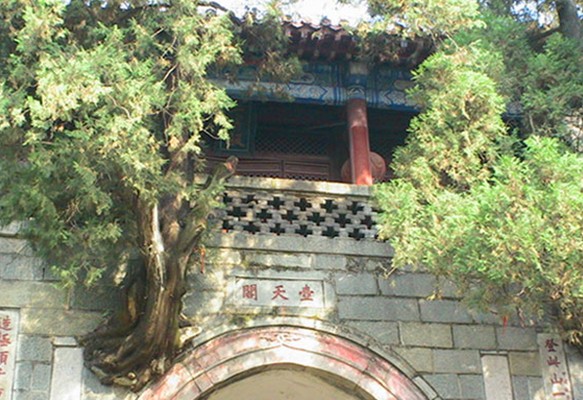 壶天阁位于斗母宫北,版权所有山东聊城聊之旅国际旅行社有限公司,转载必究!始建于明代,原名升仙阁,清乾隆十二年(1747年)拓建后改为今名,因道家称仙境为“壶天”而得名。清嘉庆年间崔映辰题联:“壶天日月开灵境,盘路风云入翠微”。又清嘉庆间泰安知府廷璐于阁上题联:“登此山一半已是壶天,造极顶千重尚多福地”。门洞上双柏横生,盘结向上,奇伟壮观。