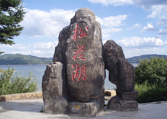 松花湖系丰满水电站建成后所形成的一个山间水库,故又名“丰满水库”,是我国东北地区最大的人工湖泊。总面积554平方公里,平均水深22米,最深处达77.5米。湖面曲折狭长,蜿蜒于松花江及其支流的山谷之间,湖面海拔266.5米。北起丰满电站大坝,南至桦树镇(又名桦树林子)附近,全长约200公里,最宽处有10余公里,蓄水量约108亿立方米。是一个具有防洪、灌溉、发电、航运、水产、旅游等多种经济意义的大型水利工程。湖中有大小岛屿一百多座,著名的如金龟岛、五虎岛、湖心岛、蘑菇岛、花砬子岛等。湖周山峰巍峨,岩崖壁立,湖水清澈澄碧,倒影连绵,山奇水秀,如一颗璀璨的明珠,在大地上熠熠生辉。景区内备有大小游船一百多艘,其中可载客百人以上的游轮有七艘,最大的一艘三层游轮能容客千人以上。最忙季节每日可接待游客近万人次。环湖航行一周,可尽览沿湖美景,领受这大自然的绮丽风光。