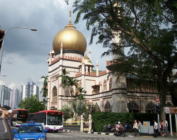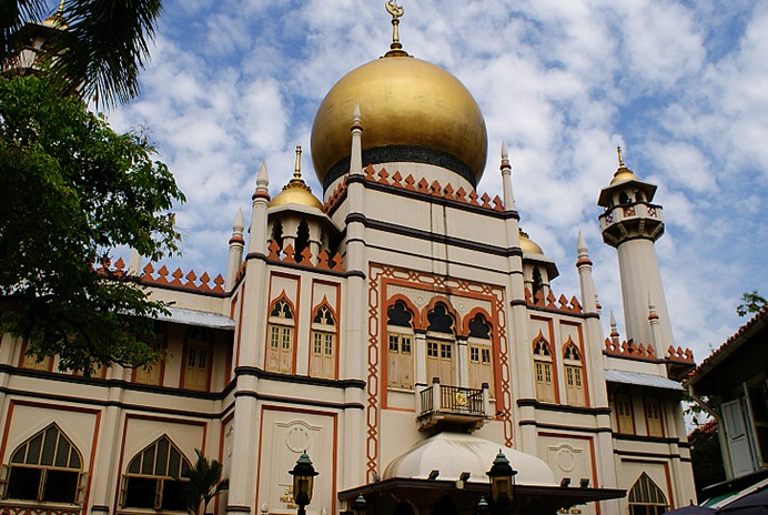 这座新加坡最大也最壮观的宗教建筑的主祈祷堂可容纳多达五千名教徒同时进行礼拜。回教堂拥有两座金黄色的大圆顶,此外,有4个对称的宣礼塔,以及许多小亭和小塔。 千万别忘了仔细看看穹顶底座,其周边围绕了一圈由信徒献上的玻璃瓶底,散发着耀目的光芒,也为这里增添了更多神圣的气息。