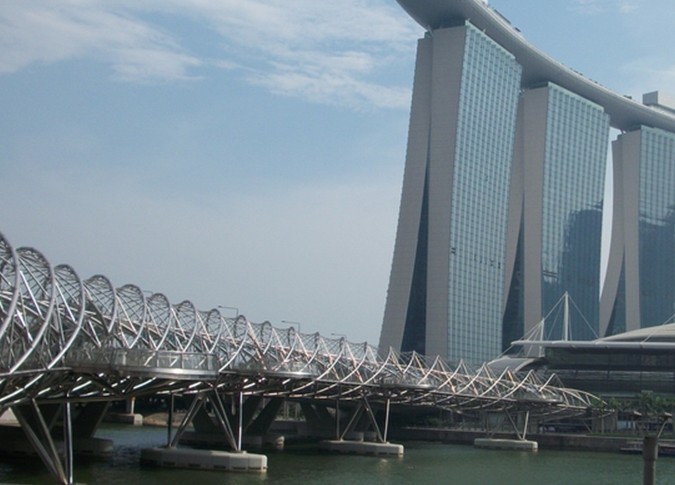 新加坡双螺旋桥,位于新加坡滨海湾,长280米、宽6米的人行桥。新加坡双螺旋桥是世界上首座双螺旋人行桥。业主单位是新加坡市区重建局(URA)和 陆路交通管理局(LTA)。于2010年4月24日建成通行。