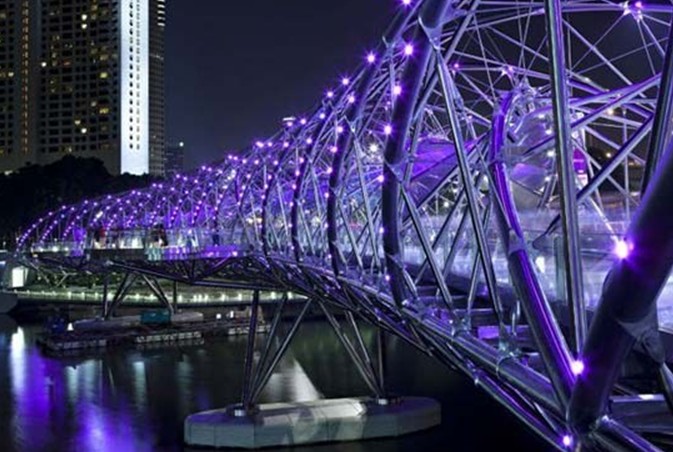 新加坡双螺旋桥于2007年3月底动工建造。设计人员受DNA结构的启发,这座桥梁想要体现的意义是“生命与延续、更新与成长”。