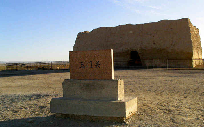 玉门关,始置于汉武帝开通西域道路、设置河西四郡之时,因西域输入玉石时取道于此而得名。汉时为通往西域各地的门户,故址在今甘肃敦煌西北小方盘城。元鼎或元封中(公元前116一前105年)修筑酒泉至玉门间的长城,玉门关当随之设立。据《汉书•地理志》,玉门关与另一重要关隘阳关,均位于敦煌郡龙勒县境,皆为都尉治所,为重要的屯兵之地。当时中原与西域交通莫不取道两关,曾是汉代时期重要的军事关隘和丝路交通要道。