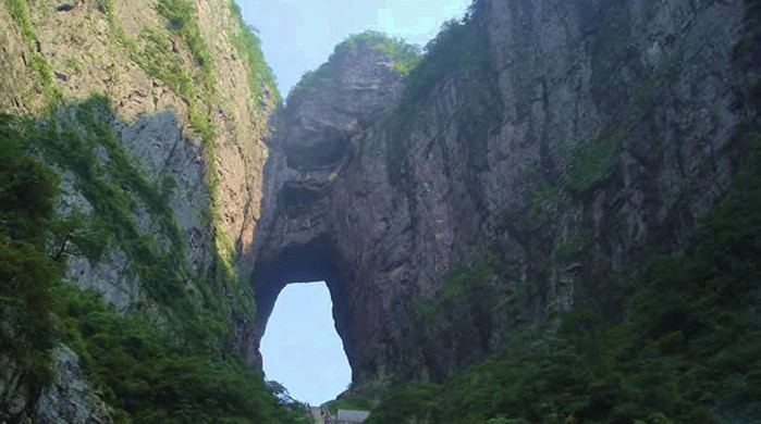 天门山巍峨秀丽,景点众多,类形各异,天门、天门洞、天门窗、天生桥、地下河,乃自然界天公造物之奇。
