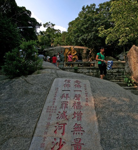 五老峰是厦门八大胜景之一,五老凌霄以其挺拔秀奇著称。山上林木蓊郁,奇石嶙峋,洞壑幽深,岩泉清冽。盘旋曲径,直上颠峰亭台,放眼海天深处,碧波荡漾,巨轮轻艇往来如梭。环视鹭岛新姿,绿树掩映,层楼大厦参天。俯瞰足下,梵宇琳宫浮现于云雾缥缈之间,恍若置身蓬莱仙阁之上,飘然欲仙,乐趣无穷。真不愧为鹭岛名山藏古寺,梵宫胜景纳游人。