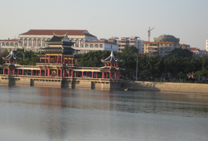 龙舟池陈嘉庚先生于1950年在海滩上筑堤围垦外、中、内三池。外池俗称“龙舟池”,宽300米,长800米,总面积24万平方米。池畔建有式样各异的“启明”、“南辉”、“长庚”及“左”、“右”、“逢”、“源”七个亭子。