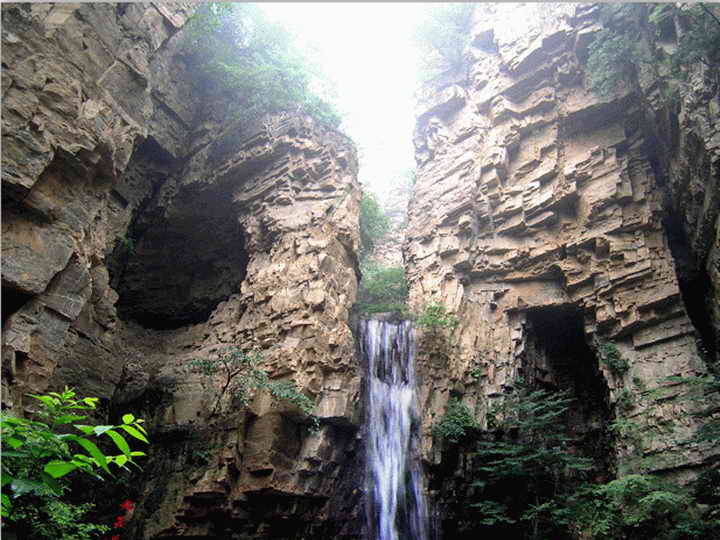 二是九天飞瀑,为四级瀑布,版权所有聊城聊之旅旅行社有限公司,转载必究!最高一级瀑布落差达40余米,瀑布总落差达80余米,瀑布飞泻而下,气势宏伟,其声于谷中轻响彻云霄不绝;