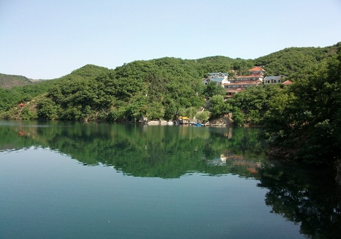 淄博市博山区,距樵岭前村西五里处有一泓碧波镶嵌于群峰挟抱之中。这就是被誉为山中明珠的淋漓湖。