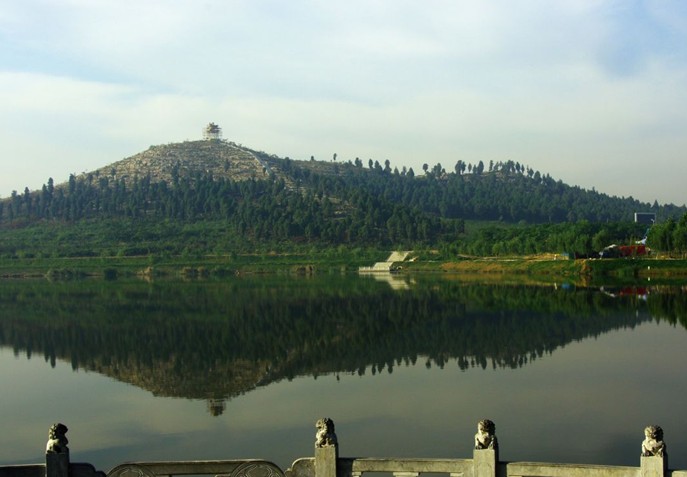 话说历史上的某一天,薛仁贵飞驾东征,刚走到人工湖上,突然电闪雷鸣,紫气升腾,坐骑玉麒麟受惊,大便失禁,边跑边拉,落地为山,薛仁贵顿悟天意,决定卒后葬于这里。有诗为证: