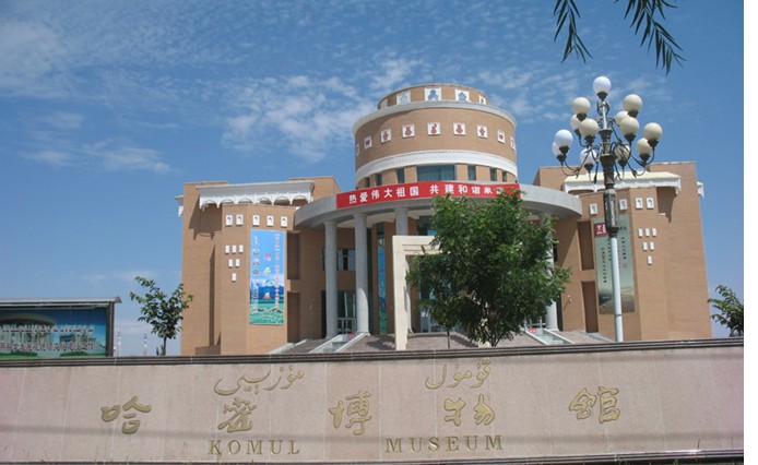 哈密博物馆成立于1988年,位于市广东路360号。2002年6月由广东省人民政府援建的南粤文化中心迁入。博物馆有展厅面积800余平方米,库房面积300平方米。馆内收藏有原始社会至明清时期的石器、青铜器、陶器、木器、铁器、毛布、清代服饰和干尸等文物12000余件,其中17(类)件为国家一级文物。