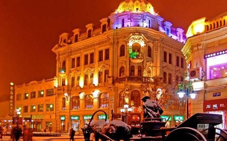 方石使得中央大街顿时显得华贵起来,当时中国大街上的外国商店、药店、饭店、旅店、酒吧、舞厅不计其数,版权所有山东聊城聊之旅国际旅行社有限公司,转载必究!其中道里秋林分公司、马迭尔旅馆在整个远东地区也颇有名气。在这条哈尔滨最时髦的街上,俄国的毛皮、英国的呢绒、法国的香水、德国的药品、日本的棉布、美国的洋油、瑞士的钟表、爪哇的砂糖、印度的麻袋,以及各国干鲜果品均有出售,不亚于一个国际商品博览会。
