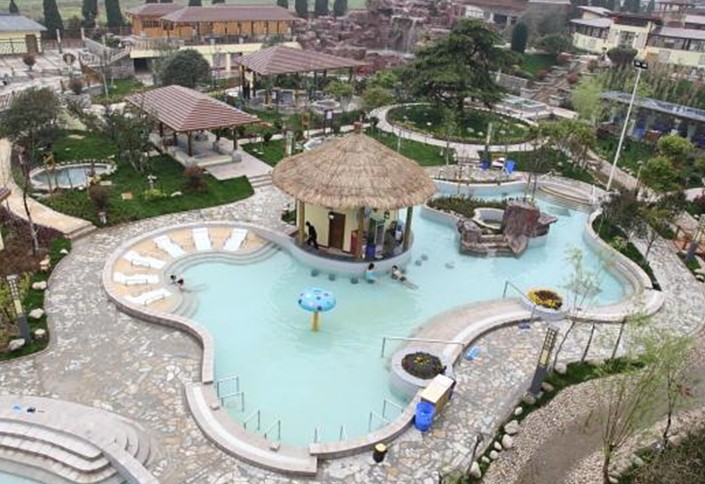 位于汤山镇温泉路8号。2005年4月正式对外开放。度假村占地13.14公顷,突破过去的温泉疗养概念,以现代性理念、国际化视角,开发温泉旅游休闲资源,是目前长江三角洲地区规模最大、设施最先进、项目最具特色的按4A标准建造的温泉健康休闲养生基地。度假村由露天温泉区、休闲酒店两部分组成。其中露天温泉区又分为花草香浴区、土耳其浴区、巴厘岛风情区、芬兰浴区、罗马大理石浴区、洞窟浴区、养生中药浴区、假山主景观区等10余个浴区,建筑与环境自然融合,在山林与溪水旁,层叠错落,和谐有致。形状、风格各异的温泉池荟萃了中国、土耳其、巴厘岛、芬兰、罗马等东西方沐汤文化之精华,无须舟车劳顿,便可尽享世界温泉文化。另有私人汤屋,趣味盎然,给人带来全新的沐浴感受。