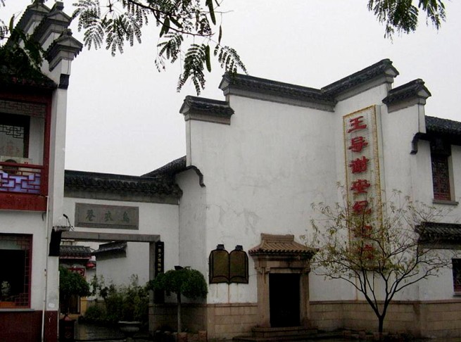 该馆大门上方悬以“王谢古居”匾额, 内分东、西两个院落。东院内来燕堂堂匾系当代著名书法家沙曼翁书写,以隶体杂汉简,笔锋遒劲有力,象征着六朝时期“王谢大宅”的风范。