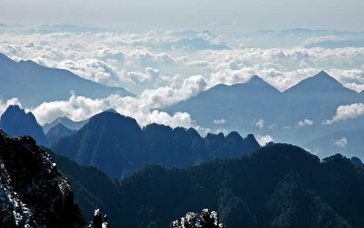 从垭底至近顶,条梁耸翠,涧谷含幽,小径回旋,山花遍缀,葱茏树木间以青藤缠绕,潺潺泉声伴以唧唧鸟鸣。尤其是突横之飞壁,乍陈之危崖,密挤一片,宛若绿色绒缦,迎风摇曳,令人赏心悦目,只觉妙趣横生。版权所有山东聊城聊之旅国际旅行社有限公司,转载必究!登临崖顶环顾四周,只见千峰竞峭,万嶂争拔,龙腾蛟升,直冲凌霄;高低森林,起伏碧连,若沧海巨涛,滚涌天际。断壁间,百丈瀑布好似银丝飘垂;稍远处,浩瀚长江恍若长带飘动。山峦、密林、流水时而滴苍飞翠;时而融金耀彩;时而裹雾笼烟;时而披纱缠云;真乃景象万千。