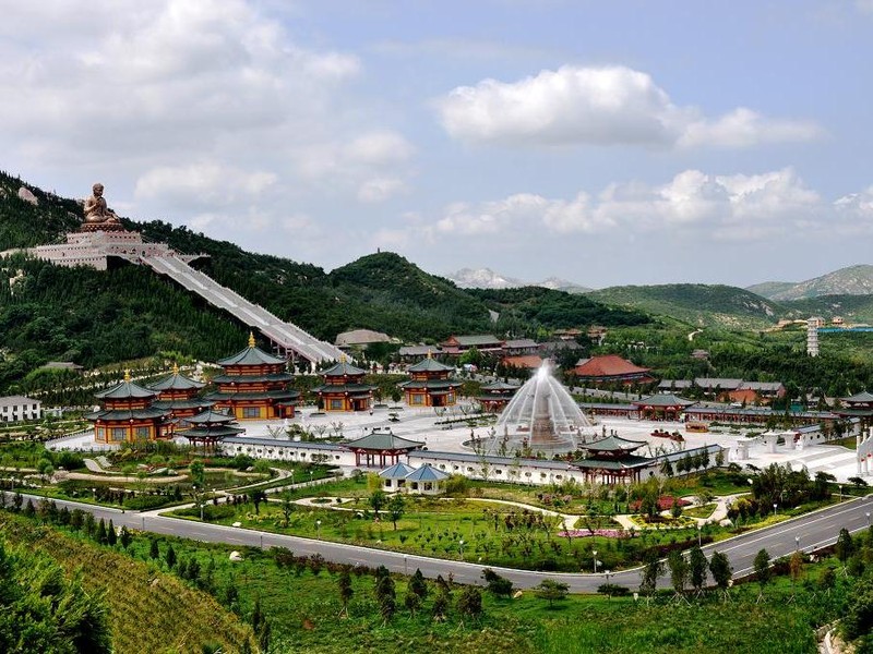 南山禅寺前身是黄县境内(今龙口市)最古老最著名禅寺――石泉寺,据《县志》记载:佛教唐时传入,“自唐至清、佛教兴盛,全县800余村,村必有庙。境内城西南(今南山)石泉寺最古老,创建于唐贞观年间。版权所有聊城聊之旅旅行社有限公司,转载必究!”1999年为发展旅游业,对石泉寺进行重修,改名为“南山禅寺”,重修后的南山禅寺复旧貌,换新颜,整体建筑气势宏伟,占地4万平方米,建筑面积9800平方米。进入山门中路有弥勒殿、大雄宝殿、圆通殿、藏经阁;东路有钟楼、地藏殿、伽蓝殿、东方三圣殿、菩提殿、文殊殿;西路有鼓楼、祖师殿、西方三圣殿、普贤殿。