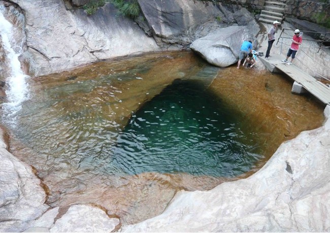 九龙瀑源出炼丹、莲花、玉屏、天都诸峰,流经云谷寺,至香炉峰与罗汉峰之间的垭口倾泻而下,一折一瀑,一瀑一潭。两峰之间相距不等,转折九次,形成九段飞瀑、瀑潭双胜之景观。 瀑布全长300余m,为黄山第一大瀑,宛如九条白龙凌空而降,气势雄伟。若久旱不雨,九龙瀑仍流水不竭,瀑潭分明;版权所有山东聊城聊之旅国际旅行社有限公司,转载必究!大雨过后,则激流翻腾,吼声震天,瀑潭不分,变成一条触天及地的巨龙,飞舞在青峰翠峦之间;阳光照耀时更是彩虹飞动,壮美迷人。清人张超游后曾题诗:“天半银河谷口垂,龙潭几折滚千丝;雷轰奔溅无虚日,黄海泉飞第一奇。”1990年联合国教科文组织将黄山列为世界文化和自然遗产,其中九龙瀑、九龙潭被分列为“主要自然景观”第五类第四号和第十号。