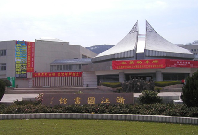 浙江图书馆创办于1900年,前身为杭州藏书楼,1903年改称浙江藏书楼,1909年,定名为浙江图书馆。现馆藏文献约390 万 册(件),有举世闻名的文澜阁《四库全书》,唐宋元明清时期的刻本、抄本、稿本;除中文文献外,英、日、俄、德、法、西 班牙等文种的文献均有一定的收藏。1998年落成的新馆坐落于杭州黄龙洞风景区旁,用地面积近3公顷,建筑面积30800平方米,座席1700余个,可藏文献450万册(件),是一座现代化的面向21 世纪的图书馆。新馆连同原杭州孤山路馆舍、杭州大学路馆舍及湖州市南浔区嘉业藏书楼共同组成新的浙江图书馆,为全省人民服务,为社会主义现代化建设服务。