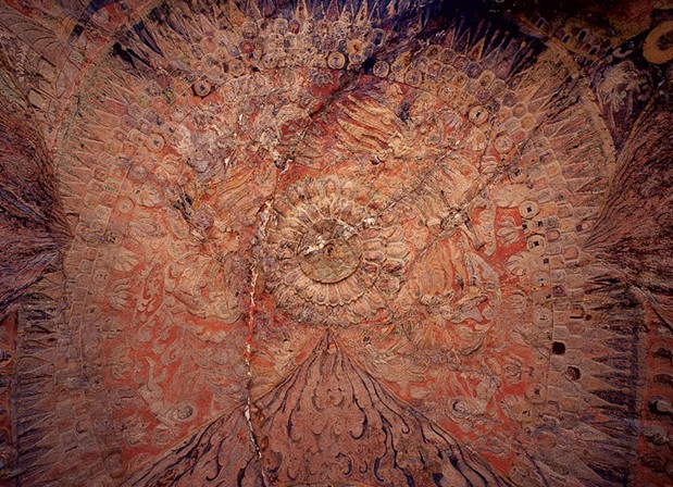 景明元年至正光四年(公元500-523)营造,洞窟平面呈马蹄形,穹隆顶,深12米,宽10.90米,高9.3米,正壁雕主佛释迦牟尼坐像及二弟子、二菩萨,南北壁均一立佛二菩萨。佛、菩萨体态修长,表情温和,神采飘逸,是北魏晚期风行的“秀骨轻像”的典型代表。地面刻莲花图案装饰,示意莲花宝池。窟顶中间浮雕一朵盛开的大莲花。版权所有山东聊城聊之旅国际旅行社有限公司,转载必究!周围有八身伎乐和两身供养天,加之流苏帷幔构成一莲花宝盖。前壁有维摩诘变相、太子舍身饲虎图,须达那太子施舍图和皇后、皇帝礼佛图(已被盗走)等大型浮雕图像及十神王像。1978年为保护洞窟雕刻拆除砖卷门洞。使鲜为人知的四头四臂、一头四臂护法天重见天日。