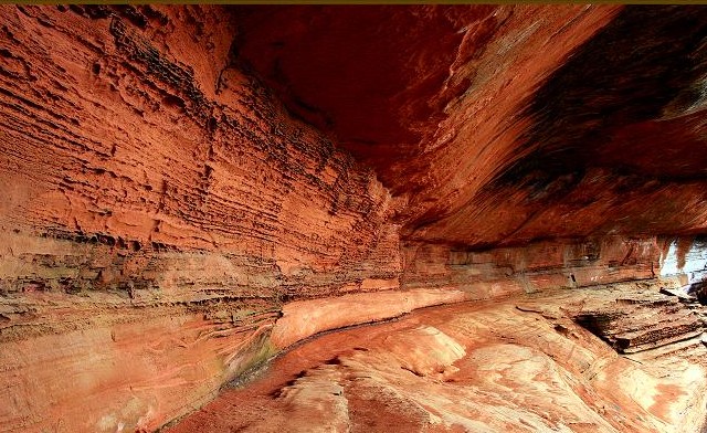 红石野谷丹霞壁画长廊区长有200米,高40余米,深15米,壁画上有许多奇特景观。岩下有一条石龙卧在那里,龙头、龙身、龙尾都栩栩如生,还有丹霞金蛙石,金龟石也十分形象,赤水是一个丹霞王国,但是这里的丹霞地貌与众不同,首先从颜色来看,它红似火,似夕阳,全国人大副委员长----王光英对杨家岩实地考察后,为这奇特景观题词“碧血丹霞,千瀑之乡”。赤水丹霞位于贵州省赤水市境内,是青年早期丹霞地貌的代表,其面积达1200多平方公里,是全国面积最大、发育最美丽壮观的丹霞地貌。版权所有山东聊城聊之旅国际旅行社有限公司,转载必究!为什么这里的丹霞地貌与众不同呢?这是它特殊的地理位置所决定的,首先它集中在一岩穴里,岩内红岩赤壁,岩外翠竹遮荫,岩顶有三处瀑布四季流水不断,自然形成一岩三瀑的独特景观。丹霞地貌是20世纪20年代由我国地质学家定名和率先研究的一种“红层地貌”,即发育于侏罗纪至第三纪的水平或缓倾斜的厚层红色砂砾岩之上,沿岩层的垂直节理由水流侵蚀及风化剥落和崩塌后退,形成顶平、身陡,麓缓的方山、石墙、石峰、石柱等奇险的丹崖赤壁地貌称为丹霞地貌。版权所有山东聊城聊之旅国际旅行社有限公司,转载必究!简单来说,就是“有陡崖的,以砂砾岩为主的红色碎屑岩地貌”。由于这种地貌最先在广东省仁化县的丹霞山进行研究,故将这种地貌称为“丹霞地貌“。丹霞地貌岩石成分含有大量不易流失的三氧化二铁和三氧化二锰,这两种难溶于水最不活跃的赤红色矿物元素,经过阳光、风雨、气温、生物、地壳运动等多种自然力量的综合作用,形成了一个个惟妙惟肖的丹霞石造型和千奇百怪的地貌景观。