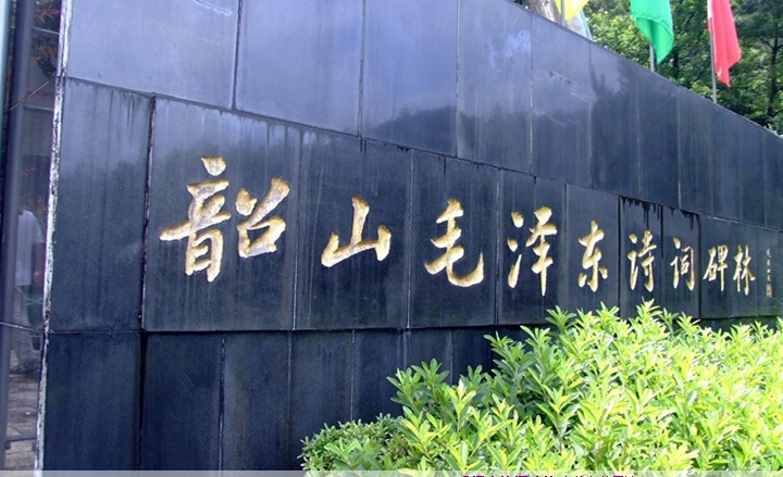 毛泽东诗词碑林位于韶峰半山腰,距毛泽东故居约3公里,1991年动工兴建,1993年正式对外开放,总占地面积约2万平方米,园中由100块汉白玉、大理石、花岗岩等组成。