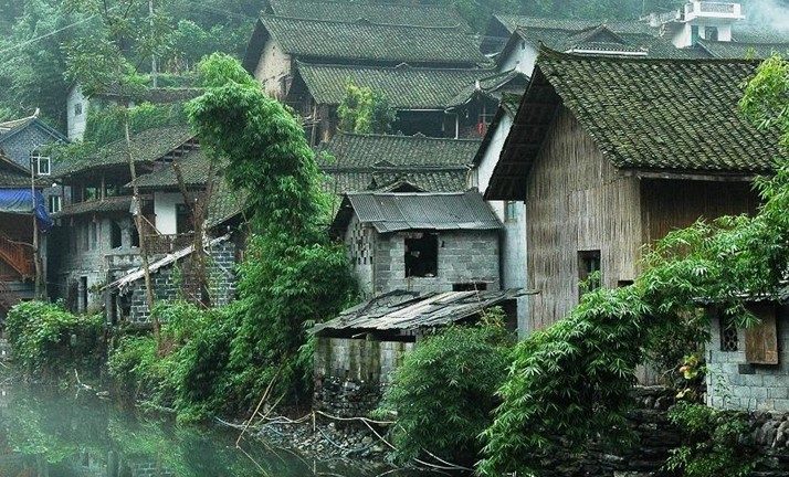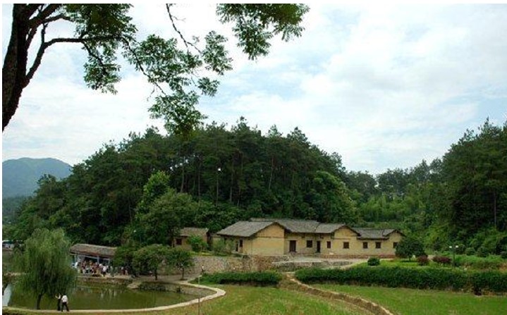 故居前有一口亩地左右的池塘,塘中有荷花,故又叫荷花塘,与之相毗邻的是南岸塘。荷花塘与南岸塘绿水莹莹,风过处,荡起缕缕涟漪。放眼青山,绿水、苍松和翠竹把这栋普通农舍映衬得生气盎然。