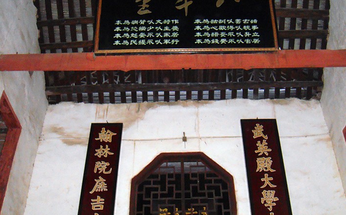 进入前大门,有广宽的内坪,坪内种植着奇花异草。通过坪中石板道,直达二进台阶。中厅门上悬挂着曾国藩所书的“富厚堂”3个红底金字。正堂分为前后两进,这是富厚堂的主体。前厅名“八本堂”,厅内悬挂曾国藩所书“八本堂”3个黑地金字匾额,额下是曾纪泽用隶书所写其父的“八本”家训:“读古书以训诂为本,作诗文以声调为本,侍亲以得欢心为本,养生以少恼怒为本,立身不妄语为本,居家以不晏起为本,居官以不要钱为本,行军以不扰民为本。”中厅后面是神台,五龙捧圣的神龛上,有曾纪泽直书的“曾氏历代先亲神位”匾;顶上悬着同治九年(公元1870年)皇上御书钦赐曾国藩的“勋高柱石”黑地金字横匾。两旁墙上还挂着赏赐的御书“福”、“寿”二字直匾;版权所有山东聊城聊之旅国际旅行社有限公司,转载必究!神龛照壁上则是他于同治二年自书的“肃雍和鸣”白地蓝字横匾。