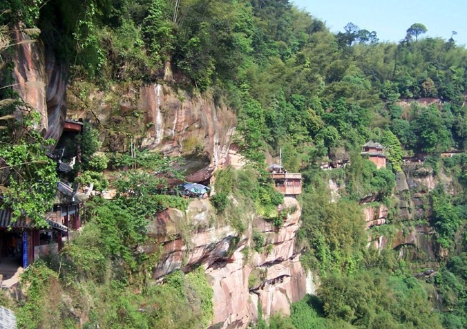 离天宝踞继续前行,沿着婉蜒个深峡茂林之中的仿古栈道可登上建于悬崖峭壁上的天宝寨。此处易守难攻,为“一夫当关,万夫莫开”之地、当地少数民族曾于此屯兵。天宝古栈道长达1500米,开凿在悬崖峭壁之上,沿栈道行进,好似飞檐走壁,惊险异常。古栈道修整之后,有惊无险,为游人增添了极大乐趣。龙吟寺位于景区北部的九龙山顶,这里地势较高。在这里远眺,不仅可以观赏波涛似的竹海,而且可看到如带的长江在远处流过。