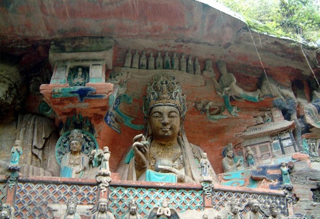 重庆市的大足石刻以其规模宏大、雕刻精美、题材多样、内涵丰富和保存完整而著称于世。它集中国佛教、道教、儒家“三教”造像艺术的精华,以鲜明的民族化和生活化特色,成为中国石窟艺术中一颗璀璨的明珠。它以大量的实物形象和文字史料,从不同侧面展示了9世纪末至13世纪中叶中国石刻艺术的风格和民间宗教信仰的发展变化,对中国石刻艺术的创新与发展做出了重要贡献,具有前代石窟不可替代的历史、艺术和科学价值。许多欧洲人、尤其是法国人,对大足石刻宠爱倍加。