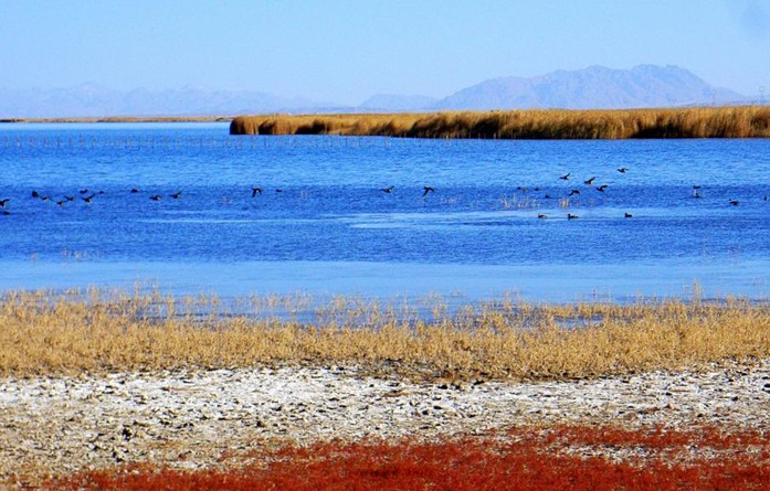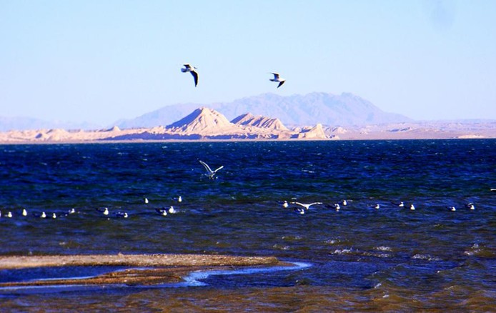 托素,也是蒙古语,意为“酥油”。托素湖的面积比可鲁克湖大3倍还多,约180多平方公里,是一个典型的高原内陆湖。托素湖周围是一望无际的戈壁滩。