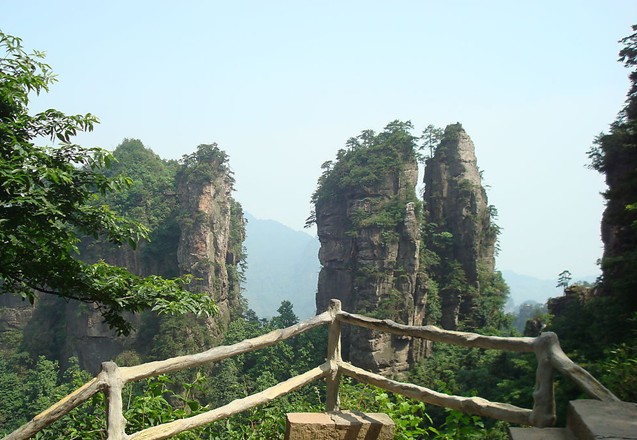 袁家界位于张家界国家森林公园北面,位居张家界武陵源风景名胜区的核心;乘坐世界第一梯—百龙天梯仅需要1分58秒;主要景区有天下第一桥、阿凡达外景取景地"哈利路亚悬浮山"乾坤柱、后花园、迷魂台、羊寨、中韩友谊亭、天悬白练等景点;站在袁家界景区的观景台上,三千奇峰尽收眼底,雄险秀野,神态各异。峡谷深处,千百根石峰石柱奇伟突立。峻峭之石,如英武将帅;嵯峨之峰,似勇猛壮士。有声有色,若静若动,形象逼真,呼之欲出。=>