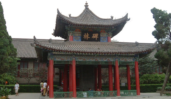 碑林博物馆位于西安市文昌门内三学街15号,原为陕西省博物馆,建于1944年,它是在具有900多年历史的“西安碑林”基础上,利用西安孔庙古建筑群扩建而成的一座以收藏、研究和陈列历代碑石、墓志及时刻造像为主的艺术博物馆。馆区由孔庙、碑林、石刻艺术室三部分组成,现有馆藏文物11000余件,11个展室,陈列面积4900平方米。博物馆本身即为孔庙旧址,其建置可追溯到北宋末年。照壁、牌坊、泮池、棂星门、华表、戟门、碑亭、两庑等明清建筑保存至今,并遵循着孔庙固有的建筑格局,组成了一个绿树掩映、古朴典雅的庭院式建筑群。