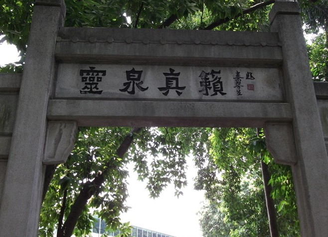 “古之楚庭”四字是以隶体字刻于石牌坊上。它是清代建造的。“楚庭”是人们所知的广州最早使用的名字在明初朱亮祖构建五层楼稍后。都指挥花英在越井岗建造了玉山楼和观音阁。玉山楼久已不存,观音阁亦早已废圮。现越井岗上的“佛山”石牌坊一带就是观音阁故址。