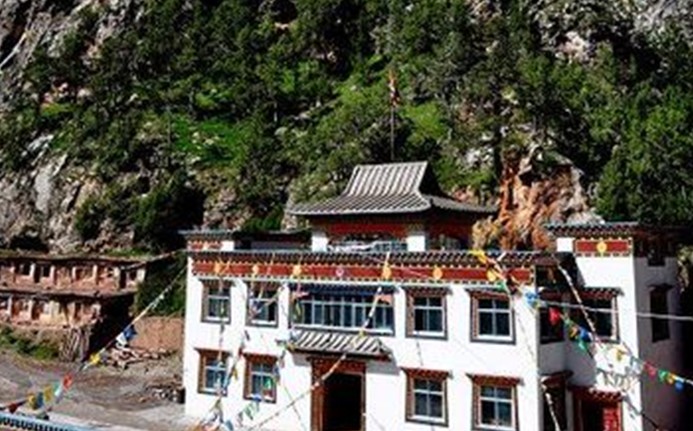 当巴查道代开始在附近寻找建寺之地,初抵布巢格(Butsakger)。其亲见本尊观世音菩萨,而且有非人献上自然显现的白色的观音石像。版权所有山东聊城聊之旅国际旅行社有限公司,转载必究! 随后抵至热格加图(Rage Kyatok)﹑拉乌布(Rawuphu)等地观察,但均无建寺的佳兆;于是巴查道代再度返回修行的山洞,请求护法。嗣后有一飞鸟至,叼走供护法的多玛。巴查道代尾随飞鸟,沿山洞右侧经一河流处,到达山洞对面山谷。一状似观音菩萨憩卧时的心窝位置,其处有一巨大石头(其石大如房室般)。飞鸟将多玛停放在石头上,刹时有许多灵异神奇的征兆显现,同时阿塞佛母(注:护法之一)现身迎接,表示欢跃之意。自此阿塞佛母成为当卡寺的护法迄至于今。在那巨石下方附近,有一片白色泥沼地(注:当卡即藏文白色泥沼之意。此地甚为吉祥,莲花生大士曾亲自加持此地),巴查道代于是在此地建寺。建寺时,因缺乏水源,巴查道代以其拐杖插入土中,地上乃自然涌出水源。(注:此水源现今仍为寺内重要之甘露法泉)。