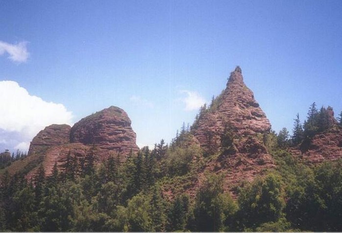一、奇特的“丹霞”地貌,景色独特,奇峰、高山、洞穴、峭壁为其主要特征。山体开头如柱如塔,似堡似壁,平地拔起