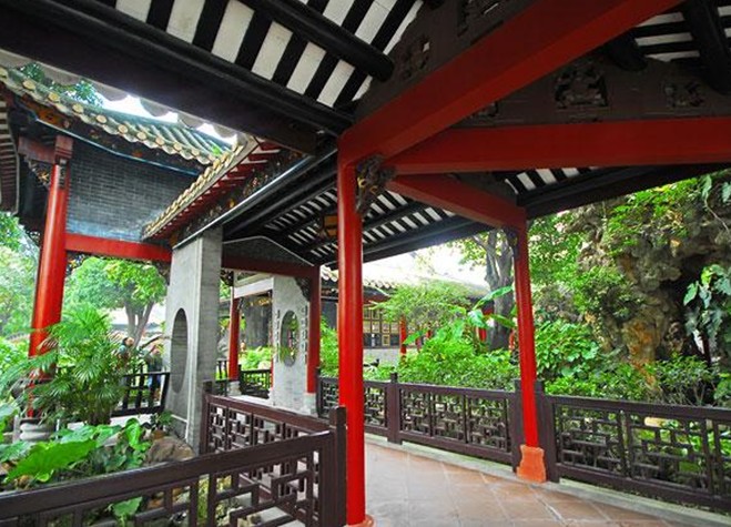 园内有大量装饰性和欣赏性的陶瓷、灰塑、木雕、玻璃。园内妙联佳句俯仰可拾,名人雅士音韵尚存,艺术精品比比皆是,令人流连忘返。园林艺术处理颇具匠心。园内叠石假山,曲水流觞,曲径回廊,景趣盎然。银杏千秋,百龄龙眼,玉棠春瑞,沙柳飘扬。闲步曲桥喜看金鲤碧波嬉戏;徐行花径,好赏绿树时花扑面。时而庭园内传出袅袅弦歌,听一粤曲,令人心清耳悦,如醉如痴。园内保存的一套清朝乾隆年间评定的“羊城八景”,就是一套仅存于世的清代旧羊城八景套色雕刻玻璃珍品,已被初步鉴定为国家一级保护文物。