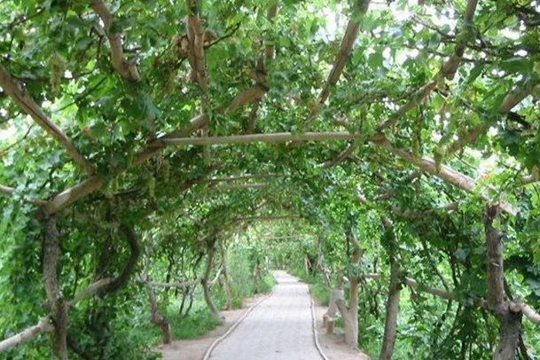 一、葡萄博览长廊:全长3公里,有早、中、晚熟鲜食葡萄品种40余个,定植葡萄20000棵,集观光、科研、教学为一体,是目前西北地区规模最大、最长的葡萄长廊。