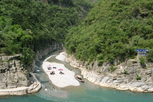 三撑峡:始于马渡河入口,全长5公里,是小小三峡第一峡。两岸悬崖峭壁,犹如斧劈;河道狭窄,天开一线,景幽水秀。逆水行舟,水流湍急而无拉纤之路,只能一篙篙前撑,故又名"长撑峡"。版权所有聊城聊之旅旅行社有限公司,转载必究!这里原始植被无损,沿途翠色映目,随处生就离奇钟乳,满天飘洒飞瀑雨雾,充满浓郁的诗情画意。峡内有鹿回头、寿星峰、石柱湾、相思泉、龙虎潭、八戒过河、母亲石、月亮寨等景观。