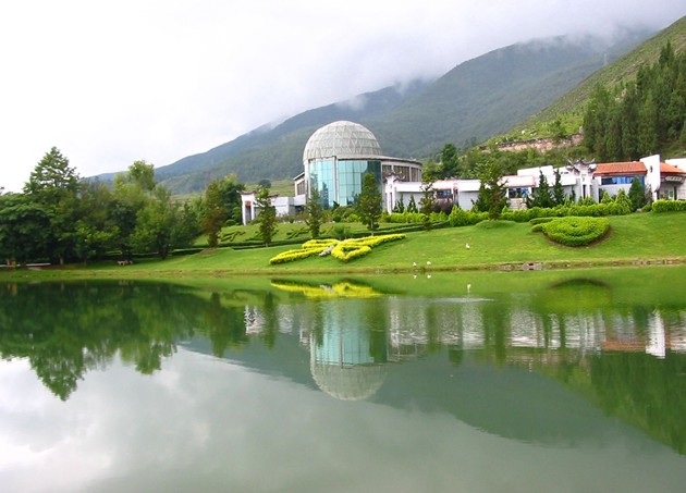 南诏行宫,是岛上的主体建筑,是南诏王避暑行宫的缩称,南诏行宫是仿古皇宫而建,由于当时的南诏王朝深受吐蕃文化和唐文化的影响,所以行宫采用的是“唐朝的屋顶、吐蕃的墙和窗、大理的民房建筑的基础和外形色彩”。