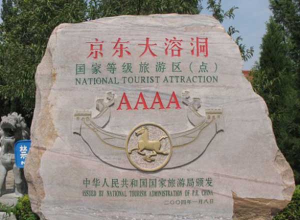 京东大溶洞于2004年1月8日被国家旅游局认定为“国家AAAA级”旅游区。
