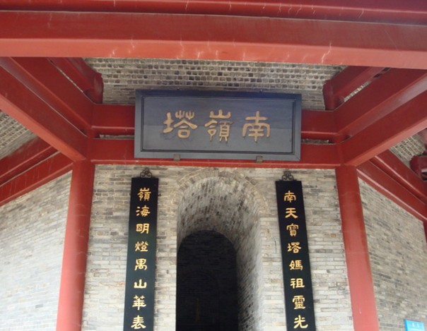 岭塔处于南沙天后宫的最后方,是为纪念海上女神林默而建,塔高45米、共8层。之所以是8层(双数),与其他塔为单数不同,是因为民间传说中有一条不成文的规定:男神仙的代码是单数,女神仙的代码是双数。因此天后宫里,无论是台阶、瓦楞还是对联(上联或下联)字数,都是呈双数的。