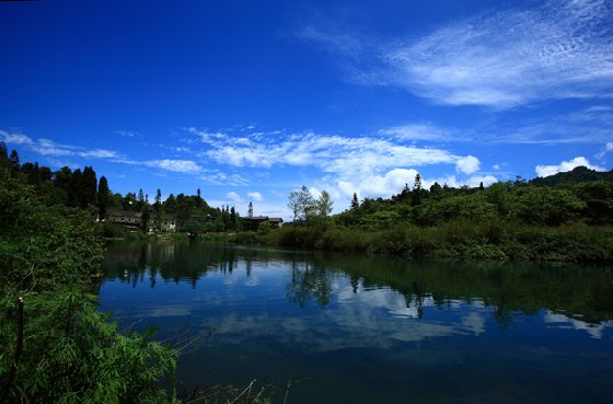 清音平湖位于清音阁旁边,面积30万平方米,系绿色生态湖,水质纯净,清澈见底。四周青嶂翠峦环抱,古木参天,湖如碧玉嵌入其中,深深浅浅,点点滴滴,不知是树映绿了湖,还是湖染绿了树。置身于其间,只听绿树浓荫处,蝉鸣声声,山风阵阵,丝丝水气洗尽凡尘,好一派山水之情,逍遥之乐。这里夏清秋凉、景美色秀,为度假避署的胜地;即使在冬季和春寒料峭的初春,这里没有冷风寒流相逼,仍然温适如画,翠色生烟。