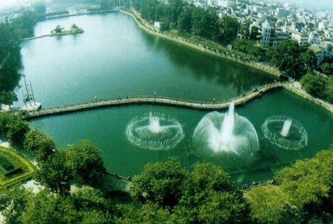 关于湖东东门塘的化容桥,有一个美丽的传说。相传有一位其貌不扬的姑娘,在桂山采桂花为生,一天她进城卖桂花药,正好碰上皇帝派人在湖边搭台选妃,观看的百姓人山人海,姑娘也挤进人群翘首观望,谁知一不小心被挤落水里。奇怪的是当她被救起来后,变得如出水芙蓉,艳惊众人,于是当场被选入皇宫。此后,湖上的这座桥就被叫作化容桥(也称化龙桥)。当然这只是传说,但也反映了河源的水水质之好,河源人的爱美之心自古有之。化龙桥南是曲折有致的飞鸾桥,桥上花草如茵。此桥的特别之处在于并不贯通两岸,游人走到桥尾,正好身处湖心,坐在亭中,享受着柔和的微风,看湖水泛起阵阵涟漪,湖岸上的热闹就在眼中,却并不闹耳,很容易生出一种超然物外的感觉。化容桥西侧原有两棵古榕,现在只剩下一棵。另一棵本有两枝,版权所有山东聊城聊之旅国际旅行社有限公司,转载必究!在朱德委员长逝世前无缘无故坍裂了一枝,而另一枝也在毛主席逝世前无缘无故连根倒塌了,不知道这是巧合还是天意。
