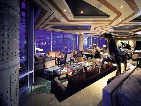 位于56层的"食在56",提供正宗的意大利比萨饼、意式西菜、美洲烧烤和日本料理,同时供给275位宾客用餐。"食在56"的特点是一律明炉,版权所有聊城聊之旅国际旅行社有限公司,转载必究!别具一格的场景和氛围,使每位宾人感到即是美食休闲,又是文化交往。当您进入56层中庭酒吧,更是别有洞天,抬头仰望世界独一无二的酒店中庭,扶摇直上152米,迷人的光环,似层峦叠嶂。舞台正面是一幅色彩斑斓、气势宏大的巨幅油画,油画上面的玻璃幕墙里高速电梯上上下下,若隐若现,钢琴手正在为您演奏世界名曲,您会感到这里胜似人间天堂。