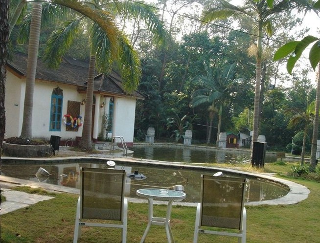 河东名人山庄的高尔夫球练习场就建在湖边的悬崖上,挥动球杆,小小的高尔夫球成抛物线状优雅地降落在碧绿的湖水里,这种妙不可言的感觉吸引了我们这帮从来没有接触过高尔夫球的门外汉。球场旁边有一片松树林,林中设有秋千和吊床,睡在吊床上,静静地透过高高的松树看着洁净如洗的蓝天白云,只见远处山顶一堆蘑菇云慢慢地被风吹着一路往山庄方向飘来,由厚变薄、由浓变淡,渐渐地变成羊毛般的云絮,随着温暖的春风飘舞浮动,直至飘散、消融。在乒乓球台前、网球场里,经过一轮大汗淋漓的运动之后,再跳进了碧绿的游泳池,一种清凉舒适的感觉必定涌上心头。