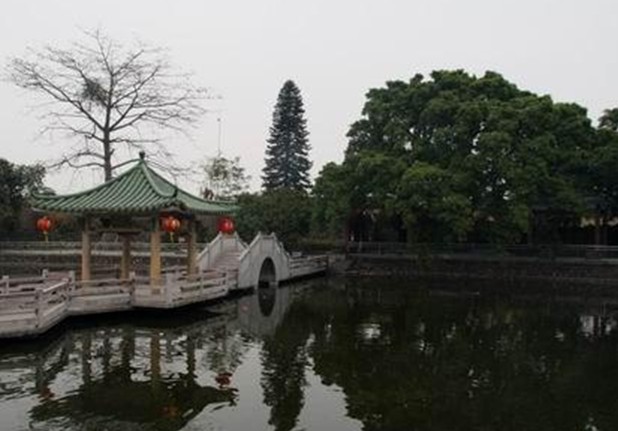 明代建筑,原为天后庙,由于潮连四面环海,为保海上出入平安,乡人立神庙供奉天后娘娘,后改名为洪圣殿。1984年扩建为公园,现有洪圣殿、慈母亭、四眼井等古迹。逢天后诞,前来供奉之游人不绝。