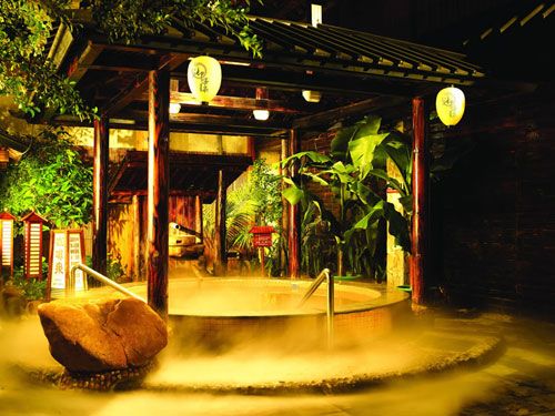 御温泉内按不同需要和功能分为灵芝汤、鲜人参汤、当归汤、薄荷汤、艾叶、三丫苦汤、芦荟汤等池子,客人还可享用各种特色温泉池、桑拿、蒸汽浴、健身房、香薰屋及饮品。明月松间,清泉石上,树影婆娑,氤氲香弥……每一个走进御温泉的人都仿佛走入一片久违的山水田园。御温泉设有天然温泉华兴池、花草温泉、木温泉、咖啡温泉、酒温泉、瀑布温泉、音波喷射温泉、石温泉,以及成人、儿童温泉游泳池和设备齐全豪华的健身中心等十余种不同类型的温泉浴服务。御温泉建有10多套独立室内温泉浴池的园林式贵宾休息房。还配有大型蒸气浴和桑拿浴室及40多间标准按摩、推拿室,供游客浴后接受保健按摩,增强泉浴的疗效。