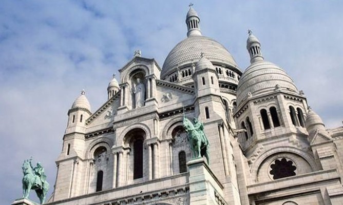 蒙马特高地至高点上的这座突出的纯白建筑就是圣心教堂(Sacré-Ceour),这里以其视角广阔,景色如画而著称。在巴黎这个浪漫之都海拔129米的山丘之上,挺立着这座宏伟的建筑,因相对高度较高,圣心教堂让所有的参观者都有高山仰止的感觉。从圣心教堂所在的山丘往巴黎市中心看,巴黎的千年历史尽收眼底。人们也可以登临圣心教堂中心最高的大圆顶,从那里能看到周围方圆50公里内的景物。这里是艾菲尔铁塔之后巴黎的第二个至高点。从埃菲尔铁塔上您看到的是辉煌的巴黎,犹如参观中国的故宫博物院,从这里俯视下去的巴黎则是一个平实的巴黎,让您有好象闲逛北京小胡同的感觉。