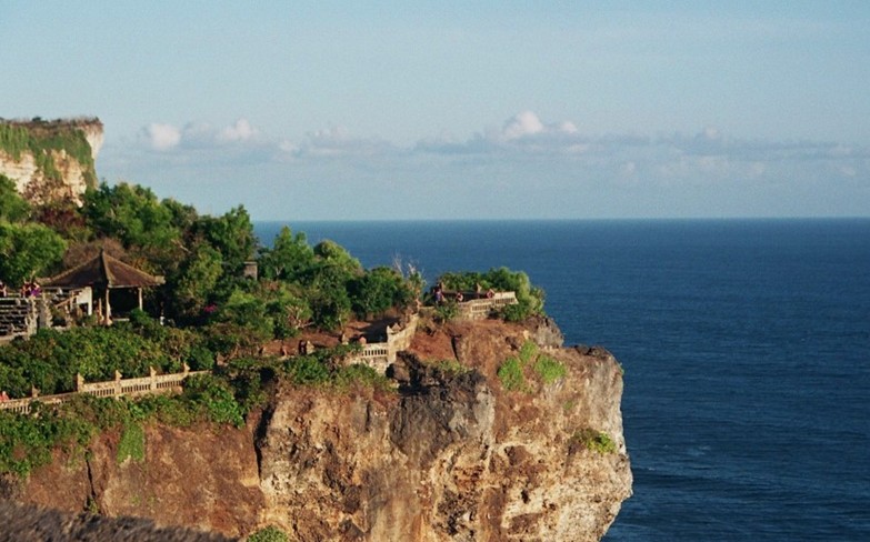 乌鲁瓦图断崖位于巴厘岛最南端。它的背后有一段凄美的爱情悲剧。传说当地有对门户不当的青年男女相恋,女方的父亲是村长,因此两人的爱情的不到任何祝福,在绝望之下双双投海殉情。为此地平添了离奇色彩。