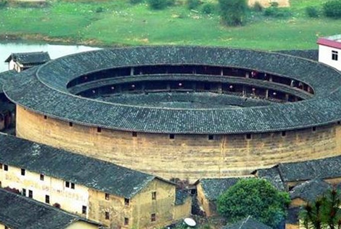 花萼楼占地面积2300平方米,建筑面积2286平方米,属土木结构的圆形建筑。共有三环,内环为一层30个房间,二环为二层60间,外环为三层120间,共有210个房间。楼高11.9米,楼的墙体用生土夯筑而成,底层宽2米。顶层宽1.3米,楼顶为木梁灰瓦。楼的第一层不设窗,第二、三层墙上设有内小外大呈三角的枪眼,整座楼只有一个大门供出入,大门框用厚而宽的花岗岩石板组成,版权所有山东聊城聊之旅国际旅行社有限公司,转载必究!大门板钉上坚厚的铁皮,这些门窗设施是为抵御外人侵扰而特意设计的。楼内有面积为283.4平方米的圆形天井,用大小不等的鹅卵石铺成,中心装饰着一个直径3米的古钱币图案,寓意着人们祈求丰衣足食的心愿。天井一侧有口古井,用于防火和生活之用。楼内还有砻、碓等常用生活设施。整个土楼布局合理、通风采光、冬暖夏凉,现楼内还住着十多户林姓人家。