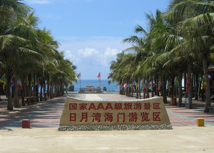 日月湾海门浏览区位于素有“海南黄金海岸”之称的日月湾海边,距离海口市168公里,三亚市87公里,从东线高速公路日月湾入口进入景区只有500米。是一处具有特色海洋景观(海门奇石)和海湾风情文化相结合的旅游景区。