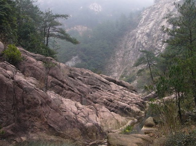 奇石群:数十块10—50吨的巨石,经过百万年水的冲刷,表面纹理不一,有似鱼鳞、浮雕、地图等,其中有一块酷似毛泽东的狂草手书。
